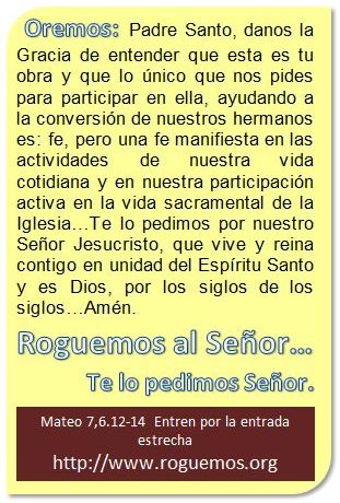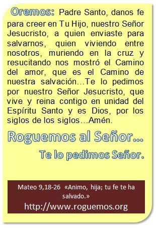 Padre Santo, danos tu luz y el discernimiento necesario para llegar a conocerte y responder con firmeza y convicción quién es Cristo para nosotros. Si llegamos a reconocerlo como Hijo Tuyo y por lo tanto como Dios, danos el valor, la coherencia y la fortaleza para así evidenciarlo en cada segundo de nuestras vidas. Te lo pedimos por Jesucristo nuestro Señor, que contigo vive y reina, en unidad del Espíritu Santo y es Dios, por los siglos de los siglos…Amén.